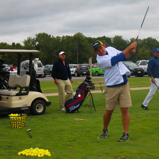Rain clouds began to fill the sky and the temperature started to rise, along with the wind, but it did not deter golfers from hitting the green and driving range to prepare for the 12:30 p.m. shotgun start.