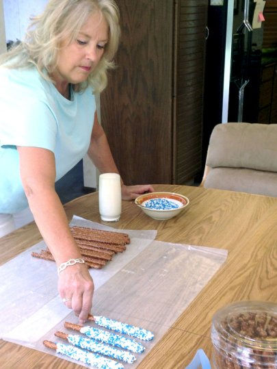 As part of a media blitz effort with SEA Blue, Debbie’s “famous pretzels” are making appearances across the Chicago area to promote the fight against prostate cancer. The pretzels are homemade at Debbie’s house and decorated blue for prostate awareness.